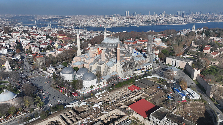 "Kubbenin alt tarafı mozaik, oralardan statik olarak müdahale etmek çok zor. Onun için üst kısımdan müdahaleler yapılacak ve kubbe sağlıklı hale getirilecek. Bununla ilgili çalışmalar, projelendirmeler de hemen hemen tamamlandı. Onaydan sonra üst kısma kubbeyi koruyucu bir çatı düşünülüyor. O da büyük bir uygulama olacak. Hesaplamaları şu anda yapılıyor. Böylece kubbeyi açtığımız zaman çevre koşullarından yağmurdan, kardan, sudan etkilenmeden uygulamalar yapılabilecek. Bu çalışmanın da mart, nisan gibi olacağını düşünüyoruz."