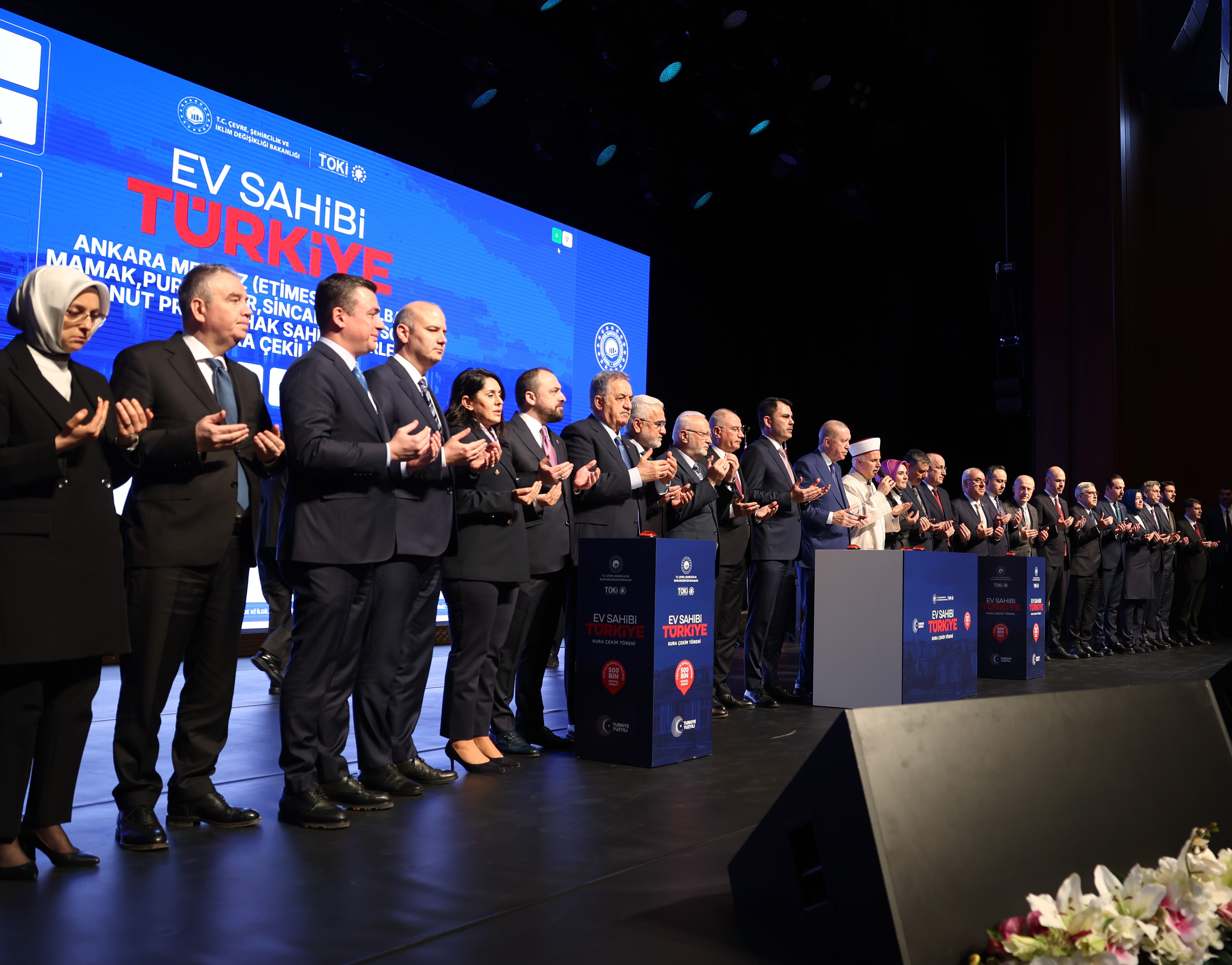 Türkiye genelinde 500 bin sosyal konutun inşa edileceği ‘Yüzyılın Konut Projesi’ kapsamında, Cumhurbaşkanı Recep Tayyip Erdoğan’ın katılımıyla Ankara’da Beştepe Millet Kongre ve Kültür Merkezi'nde ‘Ev Sahibi Türkiye’ Kura Çekim Töreni düzenlendi. Noter huzurunda 31 bin 73 konutun hak sahiplerinin belirlendiği törene Çevre, Şehircilik ve İklim Değişikliği Bakanı Murat Kurum, diğer kabine üyeleri, milletvekilleri ve vatandaşlar katıldı.
