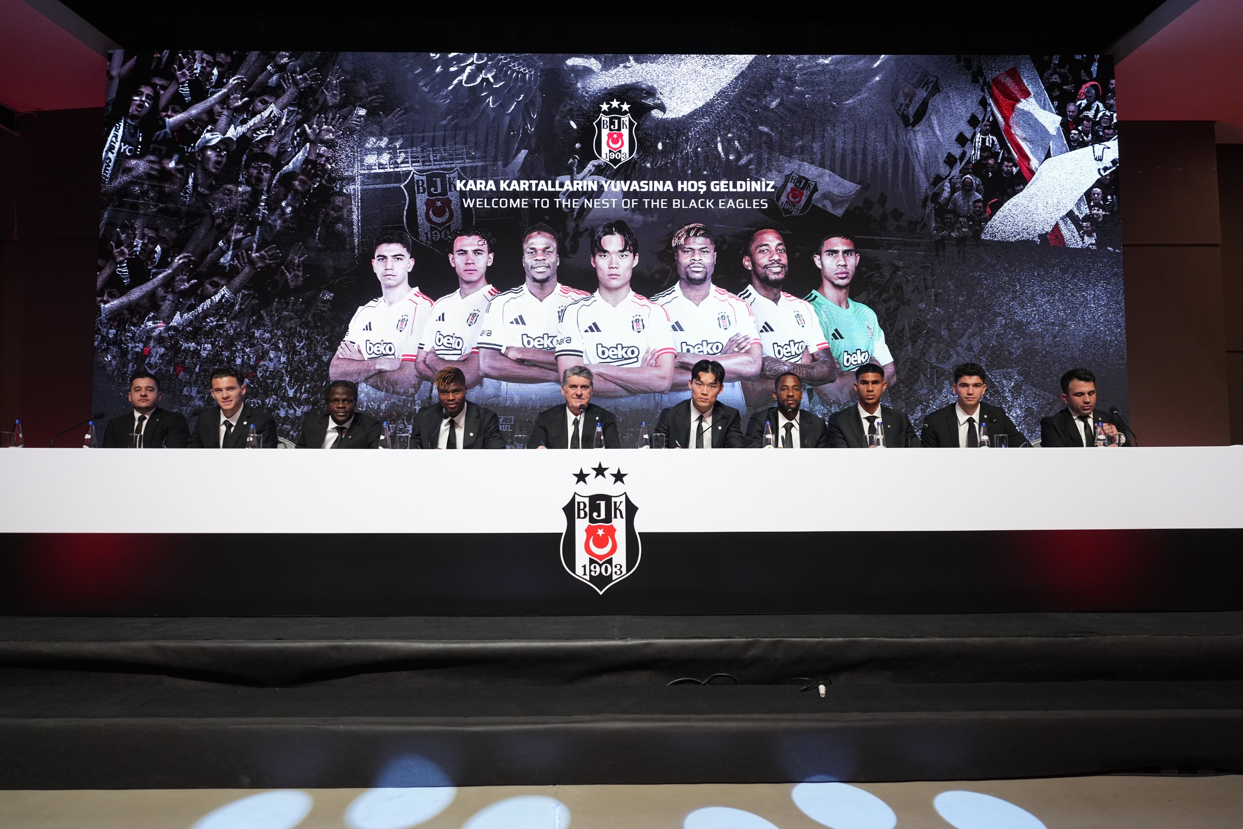 Beşiktaş; Yasin Özcan, Kristjan Asllani, Junior Olaitan, Hyeon-Gyu Oh, Emmanuel Agbadou, Amir Murillo ve Devis Vasquez için düzenlenen törenle yeni dönem başlattı. Başkan Serdal Adalı, transfer sürecinde scout ekibi ve teknik heyetle tam uyum içinde çalıştıklarını belirterek, "Camiamızı umutlandıracak bu kadro, bizim yol haritamızın en büyük ispatıdır" dedi. Törende ayrıca takımdan ayrılan isimlere teşekkür edilirken, Rafa Silva'nın adının anılmaması dikkat çekti.