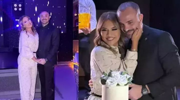 Çiftin romantik kutlamasında özel bir pasta da dikkat çekti. Paylaşıma kısa sürede binlerce beğeni ve yorum geldi.
