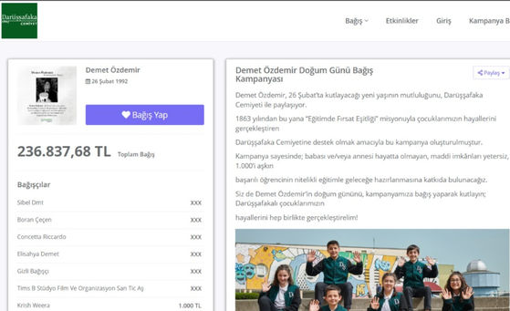Yeni yaşını kutlamak için Darüşşafaka Cemiyeti ile birlikte başlatılan bağış kampanyasına, sevenleri yoğun ilgi gösterdi. Çocukların eğitimine destek olmak için düzenlenen kampanyada, Özdemir'in hayranları kısa sürede 236.837.68 TL bağış topladı.
