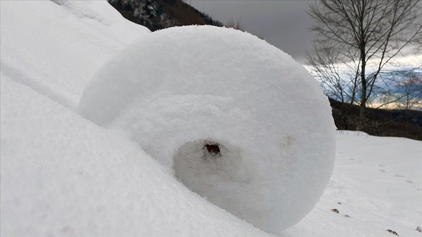 İlçeye bağlı Dereli Yaylası'nda kar yağışı sonrası doğada nadir görülen kar ruloları oluştu.