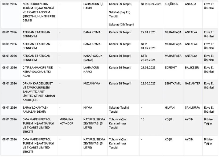 Güncellenen listede, günlük tüketimde sıkça yer alan bazı ürün gruplarında mevzuata aykırı uygulamaların tespit edildiği belirtildi.