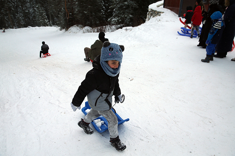 Doğal güzellikler arasında teleferikle dolaşıp, yürüyüş imkanı bulan konuklar, kayak ve snowboard yapıp kızakla kayarak keyifli vakit geçiriyor.