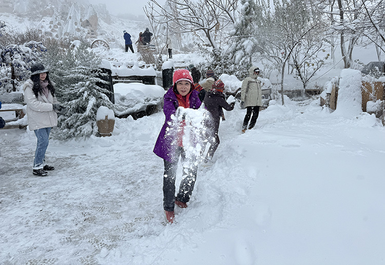 Tayvanlı turist Jessica Ann da kar yağışının kendileri için mutluluk verici bir sürpriz olduğunu ifade etti.