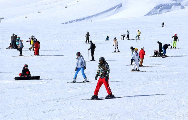 Yerli ve yabancı kayakseverler, Tekir, Develi, Hacılar ve Hisarcık kapılardaki tesislerde kayak ve snowboard yaparak güneşli havada eğlenceli vakit geçirdi.