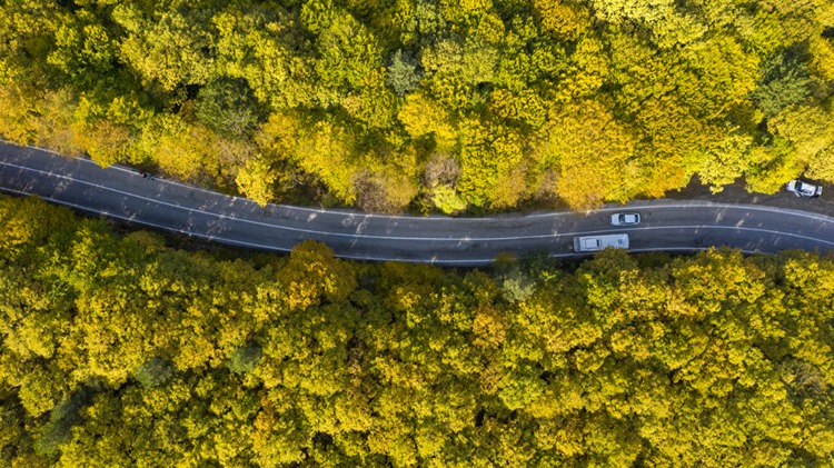 Tabiat parkına ulaşımı sağlayan kara yolunda, yeşil, sarı ve kahverenginin tonlarına bürünen ağaçlar güzel manzara oluşturuyor.