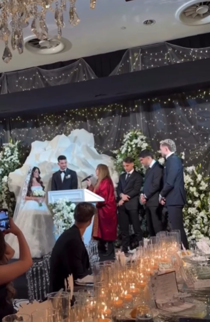 Galatasaraylı futbolcular Eren Elmalı, Yunus Akgün ve Barış Alper Yılmaz, çiftin şahitliğini yaptı.