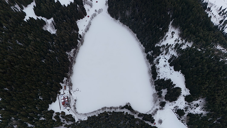 Doğal güzelliğiyle her mevsim yerli ve yabancı ziyaretçilerin ilgi gösterdiği Karagöl Sahara Milli Parkı içerisindeki göl, kar yağışının ardından beyaza büründü.